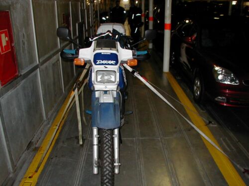 der TT-Line ein. Wir befestigten unsere Motorräder mit den ausliegenden