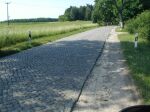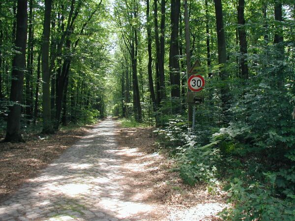 Nach dem köstlichen Mittagsmahl ging es einkleines Stück zurück auf der B246. Es sollte nun durch das Schlaubetal gehen. Doch leider fand ich die "Einfahrt" nicht... Ein hin und her über mehrere Kilometer begann. Schlußendlich faßte ich mir ein Herz und fuhr in einen vermeindlichen Wald- und Forstweg einfach hinein. Und siehe da: Es war gar kein Wald- oder Forstweg! - es war eine öffentliche Straße! Zuerst mochte ich es kaum glauben, doch nix wies auf eine nicht-öffentliche Straße hin. Außer das uralte und teilweise fehlende Kopfsteinpflaster vielleicht. Das Straßenschild mit der "30" war eigentlich gut zu erkennen, aber leider nicht von der B246 aus. Die anderen beiden Schilder, "wellige Straße" und "unbefestigter Fahrbahnrand", waren nur bei genauerem Hinsehen zu erahnen.