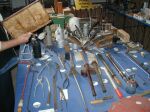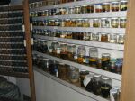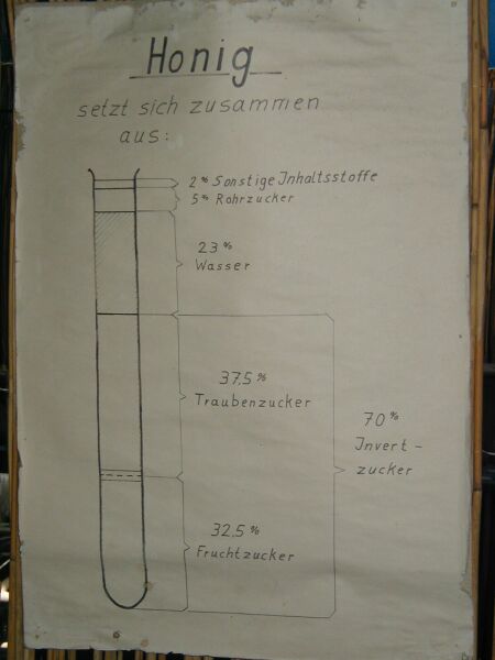 Eine Deutschlandkarte an der Innenseite des Eingangstores verrät dem Besucher, daß die Gäste nicht nur aus Berlin und Umgebung hierher kommen um viel Wissenswertes über die kleinen fleißigen Summsetierchen zu lernen. Die vielen Ausstellungsstücke in und auch um den großen Lagerschuppen herum vermitteln eine Ahnung von der großen Sammelleidenschaft des Besitzers. Es wird vieles gezeigt und ausgiebig erklärt: Daß es z.B. Putz-, Ammen-, Bau-, Wach- und Tracht-Bienen gibt und das die armen Dinger max. 55 Tage alt werden. Weiter kann man hier vieles über Honiggewinnung, -verarbeitung, -produkte, Bienestockwerkzeuge sowie die verschiedenen Arten von Rähmchen und Bienenstockbauten erfahren. Zusätzlich zum Thema Honigbiene (Apis Mellifica) sind hier auch noch Einrichtungsgegenstände einer alten Schusterei und alltägliche Gebrauchsgegenstände und Maschinen aus dem bäuerlichen Leben zu Zeiten der DDR zu bestaunen. Eines der Highlights war für mich jedoch das kleine "Klassenzimmer", wo "eingelegte" Heuschrecken, Mäuse, Maulwürfe, ein junger Spatz mit Zecken, Wühlratten, Hausratten und sonstiges Getier in Gläsern schön ordentlich nebeneinander auf schmalen Regalen standen.