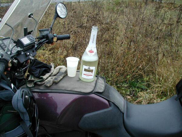 > den 10.000ste wiesi(monats)tour-Kilometer mit Sekt gefeiert (alkoholfrei)