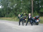 > Wollte es machen, wie damals in Schweden (wo es super geklappt hatte): PKW mit Fernlicht vorweg und wir hinten dran - wegen der so besseren Sicht durch PKW´s 2 Scheinwerfer. Doch das klappte nicht so recht. PKWs waren meist ohne Fernlicht und nur in behäbiger Fahrt außerhalb der Ortschaften unterwegs. Vielleicht hielten sie meinen "Leuchtefix" für ´ne Polizeistreife *hi, hi, hi*