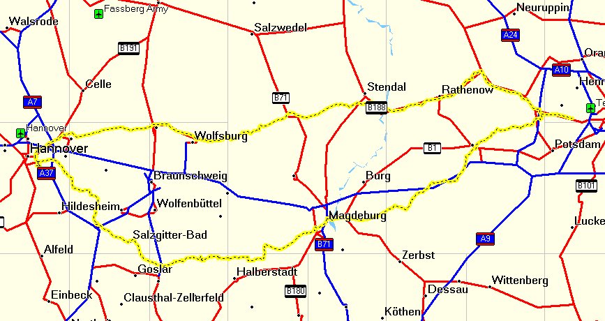 Treffpunkt "Start 2" - B5 - Priort - Buchow-Karpzow - Falkenrehde - Neu Falkenrehde - Ketzin - Zachow - Gutenpaaren - Roskow - Weseram - Klein Kreutz - Brandenburg An Der Havel - Wilhelmsdorf - Grüningen - Glienecke - Ziesar - Schopsdorf - Magdeburgerforth - Drewitz - Lübars - Klein Lübars - Hohenziatz - Möckern - Nedlitz - Königsborn - Heyrothsberge - Magdeburg - Schleibnitz - Wanzleben - Stadt Frankfurt - Andersleben - Oschersleben (Bode) - Großalsleben - Krottorf - Schwanebeck - Haus Nienburg - Eilenstedt - Dingelstedt Am Huy - Anderbeck - Badersleben - Dardesheim - Deersheim - Osterwieck - Lüttgenrode - Wennerode - Vienenburg - Wöltingerode - Weddingen - Groß Döhren - Liebenburg - Salzgitter-Bad - Haverlah - Baddeckenstedt - Rhene - Grasdorf - Nettlingen - Bettrum - Hoheneggelsen - Mölme - Oedelum - Bierbergen - Soßmar - Clauen - Groß Lobke - Klein Lobke - Gretenberg - Sehnde - Klein Bolzum - Köthenwald - Ilten - Hannover - Messeschnellweg - A37 - neue AS zur B188 - Ortsumgehung Burgdorf - Hülptingsen - Kreuzweg - Uetze - Wilhelmshöhe - Ahnsen - Meinersen - Ortsumgehung Gifhorn - Filterberg - Dannenbüttel - Osloß - Weyhausen - Vorsfelde - Oebisfelde - Niendorf - Bergfriede - Taterberg - Miesterhorst - Wernitz - Solpke - Weteritz - Ortsumgehung Gardelegen - Kloster Neuendorf - Jävenitz - Hottendorf - Ortsumgehung Uchtspringe, Börgitz, Staats und Vinzelberg - Döbberlin - Tangermünde - Wust - Ortsumgehung Rathenow - Stechow - Rhinsmühlen - B5 - Pessin - Sebelang - Ribbeck - Berge - Lietzow - Ortsumgehung Nauen - AK Berlin-Spandau - Berlin