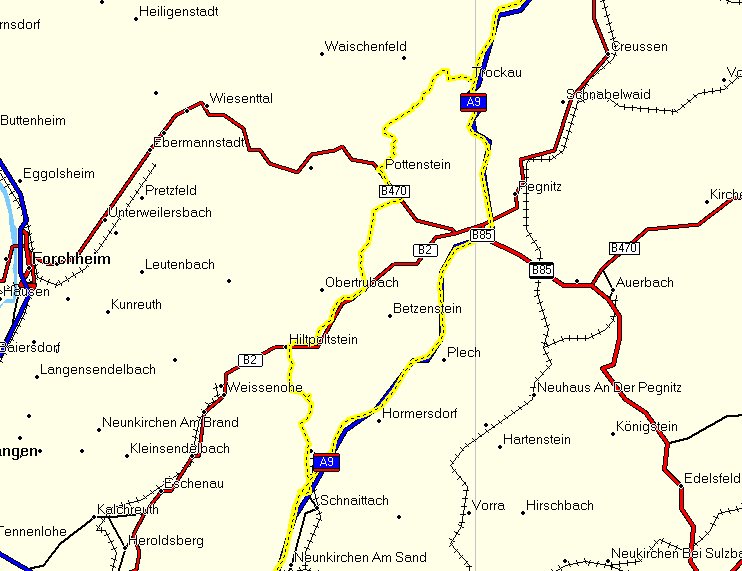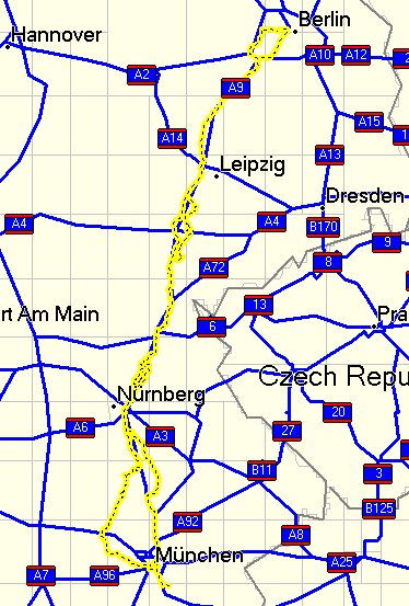 Treffpunkt "Start 3" - AS Siemensdamm - AD Funkturm - AVUS - AD Nuthetal - AD Potsdam - AS Weissenfels - Wernsdorf - Deuben - Theißen - Kleinosida - Salsitz - Schkauditz - Wetterzaube - Pötewitz - Ahlendorf - Crossen an der Elster - Hartmannsdorf - Caaschwitz - Bad Köstritz - Thieschitz - Rubitz - Töppeln - Frankenthal - Scheubengrobsdorf - Dürrenebersdorf - Weißig - Großebersdorf - Porstendorf - Mittelpöllnitz - Braunsdorf - Auma - Wenigenauma - Zadelsdorf - Pahren - Tegau - Dragensdorf - Dittersdorf - AS Dittersdorf - AS Trockau - Vorderkleebach - Hohenmirsberg - Haselbrunn - Pottenstein - Kirchenbirkig - Regenthal - Weidenhüll Bei Leienfels - Leupoldstein - Almos - Hiltpoltstein - Winterstein - Hüttenbach - Simmelsdorf - AS Schnaittach - AS Allersberg - Reckenstetten - Rohr - Freystadt - Thannhausen - Oberndorf - Kerkhofen - Erasbach - Berching - Beilngries - Paulushofen - Amtmannsdorf - Eglofsdorf - Pondorf - Schamhaupten - Sandersdorf - Tettenagger - Mindelstetten - Hiendorf - Oberdünzing - Vohburg An Der Donau - Rockolding - Lindach - AS Manching - AD Holledau - AK Neufahrn - AK München-Nord - München Mittlerer Ring Ost - München